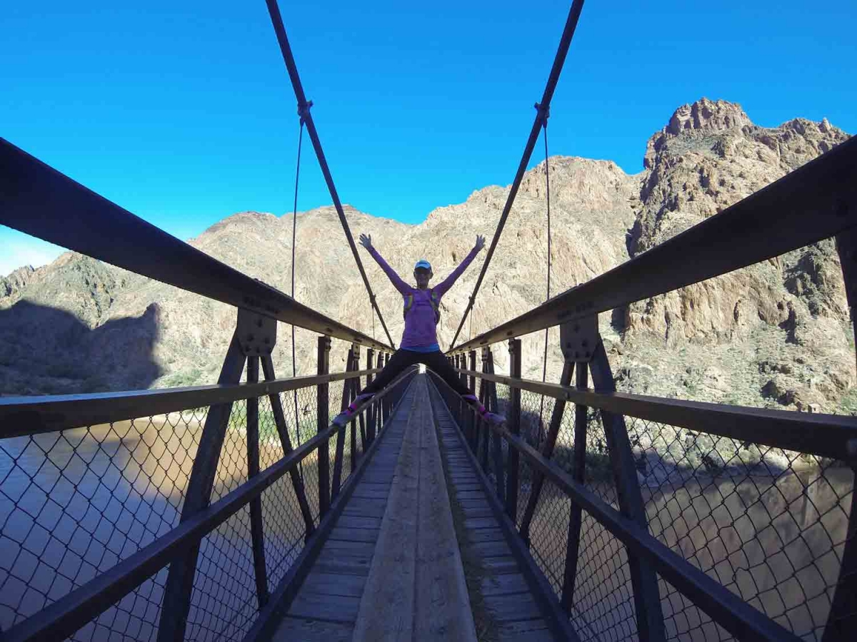 We just came down in Kaibab and we’re at the bottom in the Grand Canyon, just passing over the bridge.