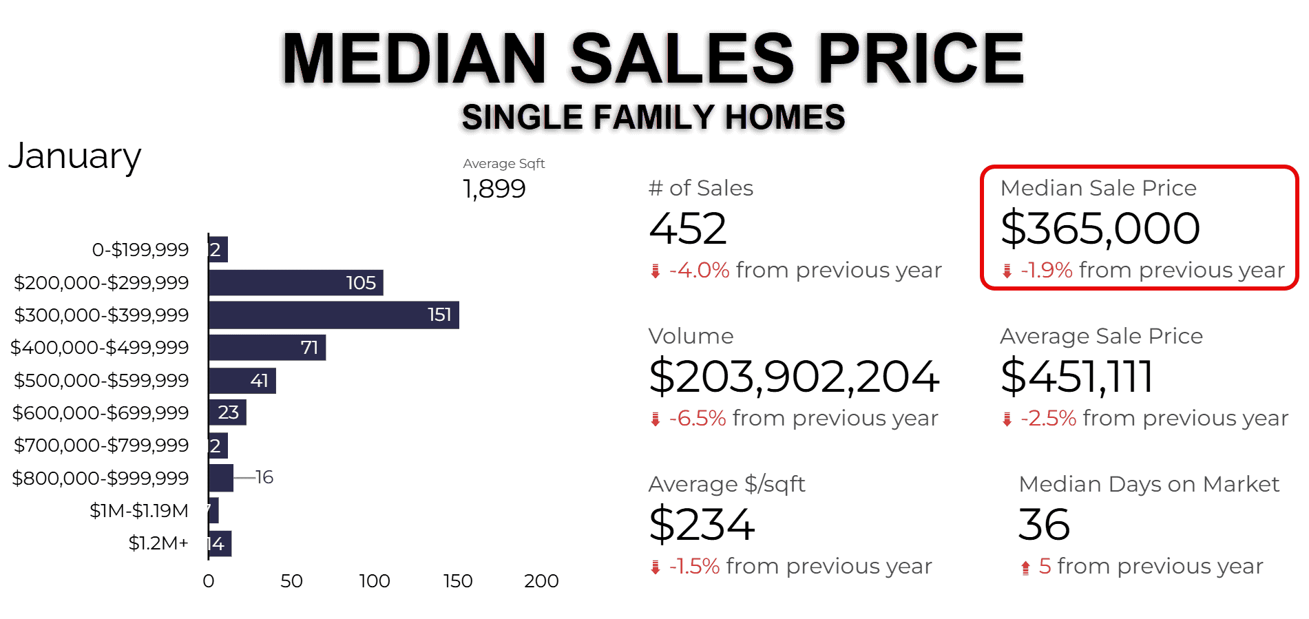 The median single-family home sales price was $365,000, down 1.9% year-over-year.