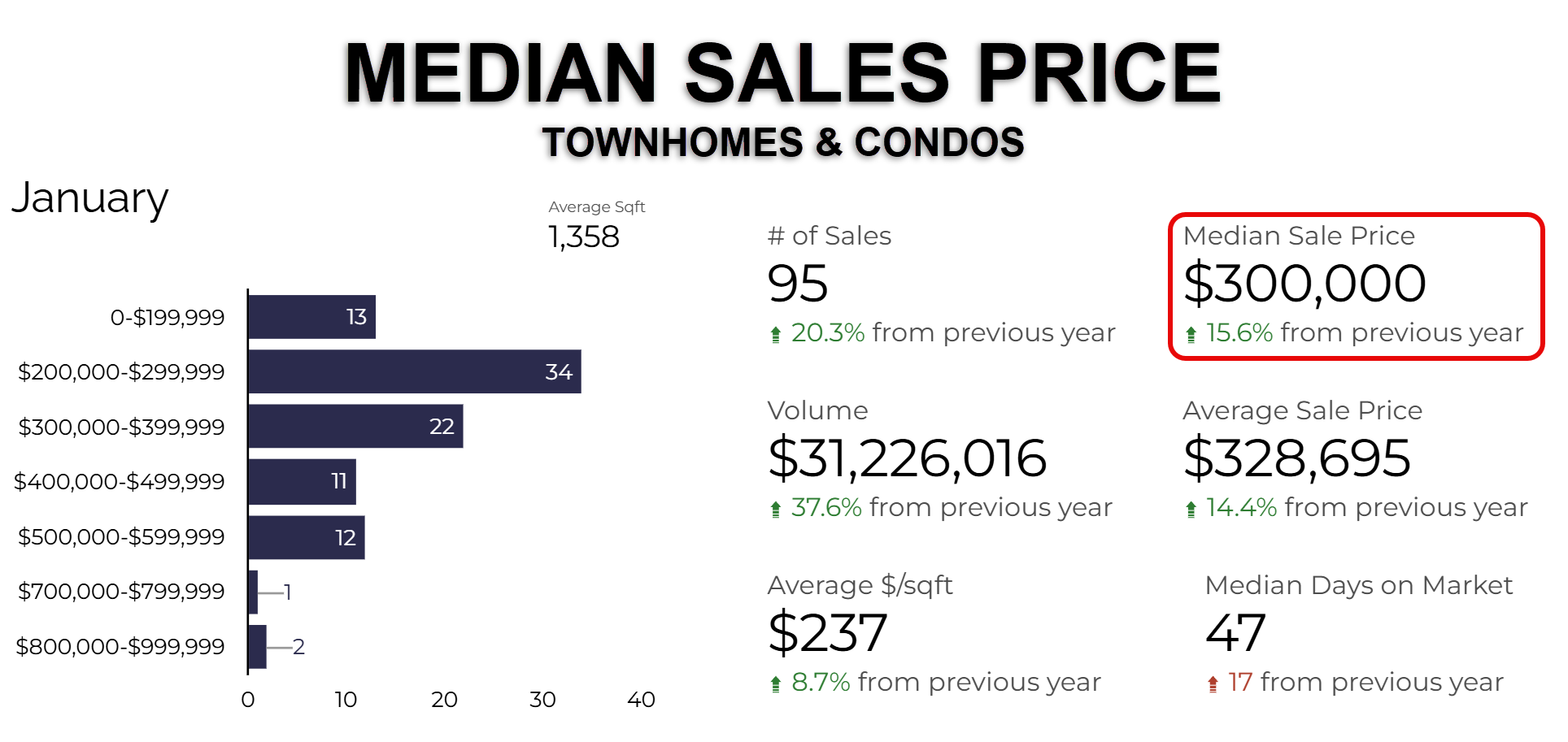 The median days on market (all properties) was 38 days, up 7 days year-over-year.